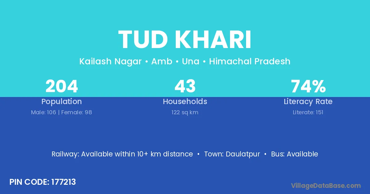 According to Census 2011 information, the village code of Tud Khari village is 177213.