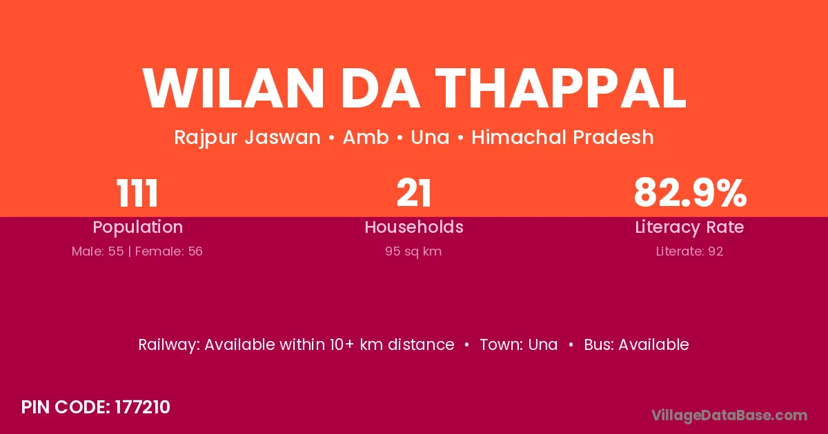Wilan Da Thappal village has a total population of 111 people, of which 55 are males and 56 are females.