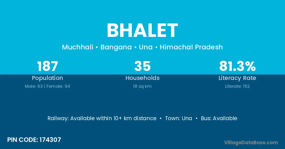 Bhalet village has a total population of 187 people, of which 93 are males and 94 are females.