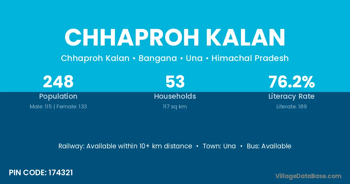 Chhaproh Kalan village has a total population of 248 people, of which 115 are males and 133 are females.