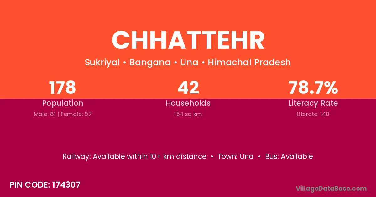 Chhattehr village has a total population of 178 people, of which 81 are males and 97 are females.