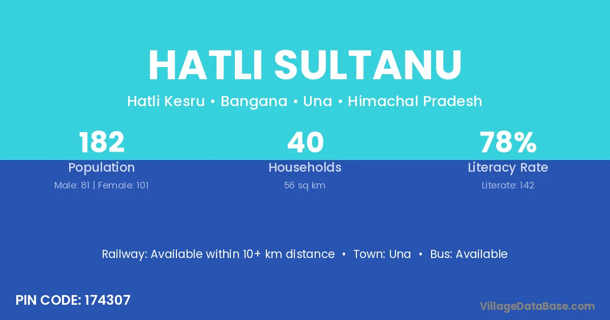 Hatli Sultanu village has a total population of 182 people, of which 81 are males and 101 are females.