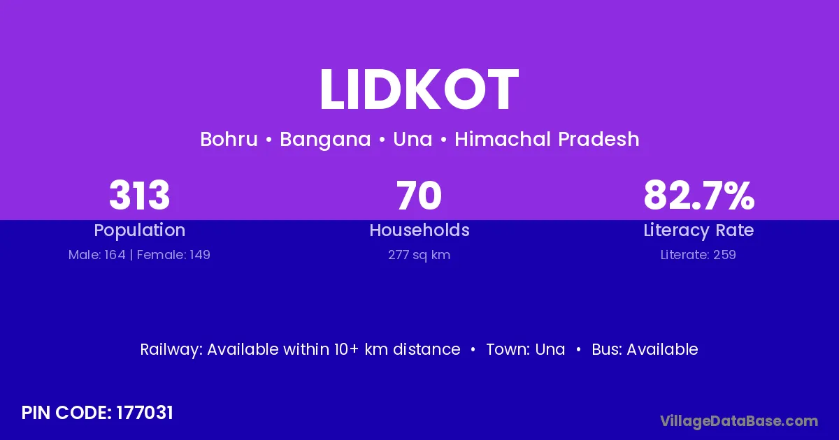 Lidkot village has a total population of 313 people, of which 164 are males and 149 are females.