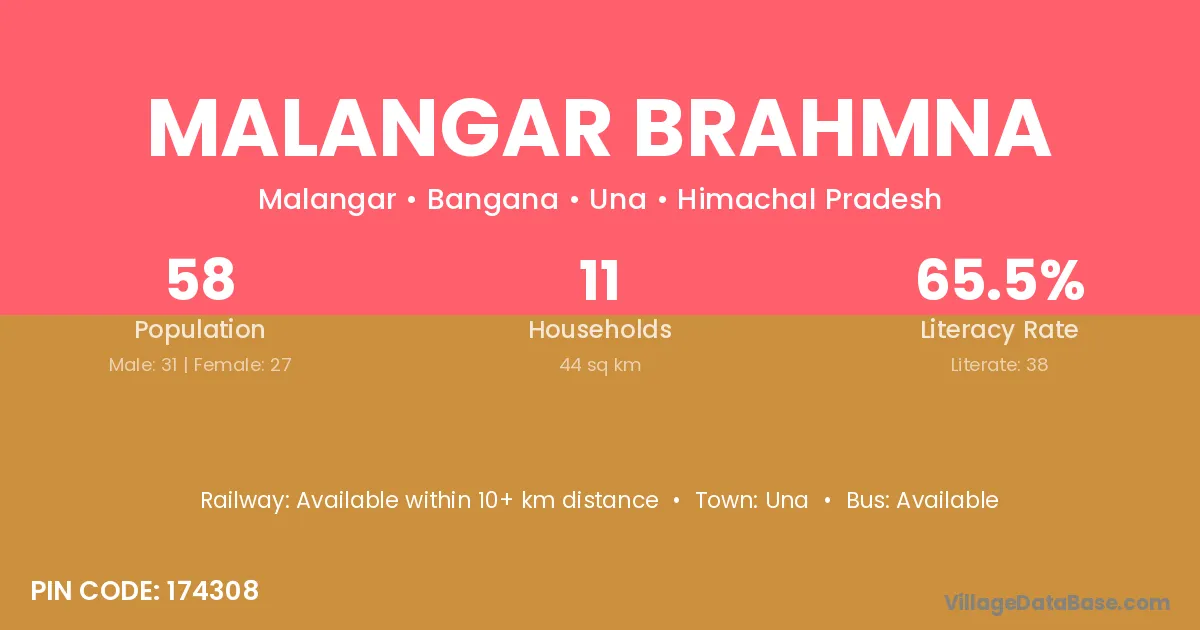 Malangar Brahmna village has a total population of 58 people, of which 31 are males and 27 are females.