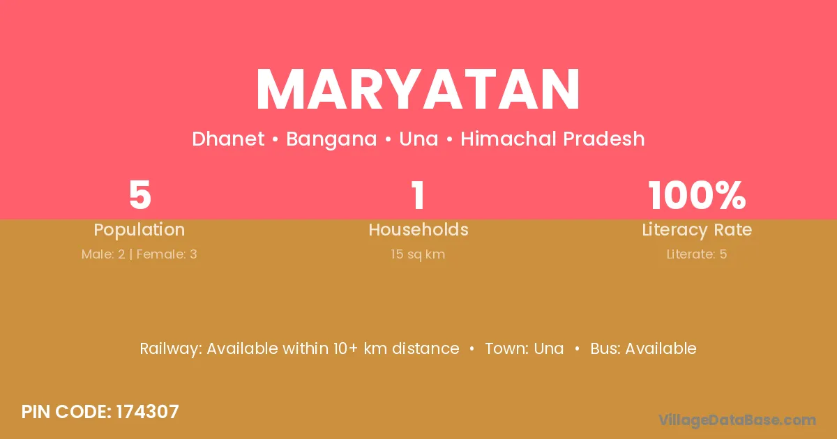 Maryatan village has a total population of 5 people, of which 2 are males and 3 are females.