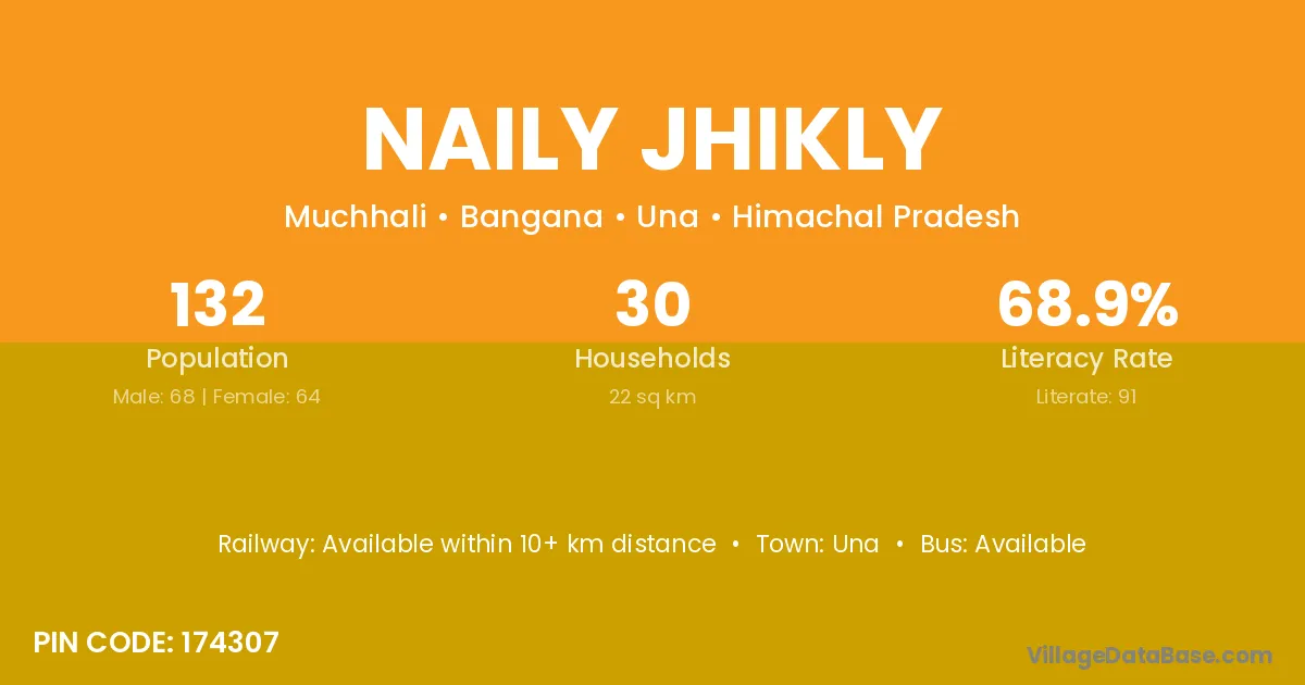 Naily Jhikly village has a total population of 132 people, of which 68 are males and 64 are females.