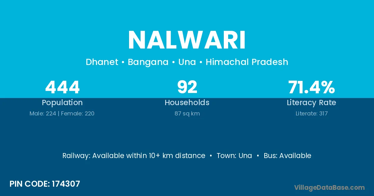 Nalwari village has a total population of 444 people, of which 224 are males and 220 are females.