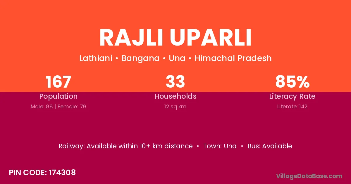 Una is the nearest town to Rajli Uparli village for major economic activities