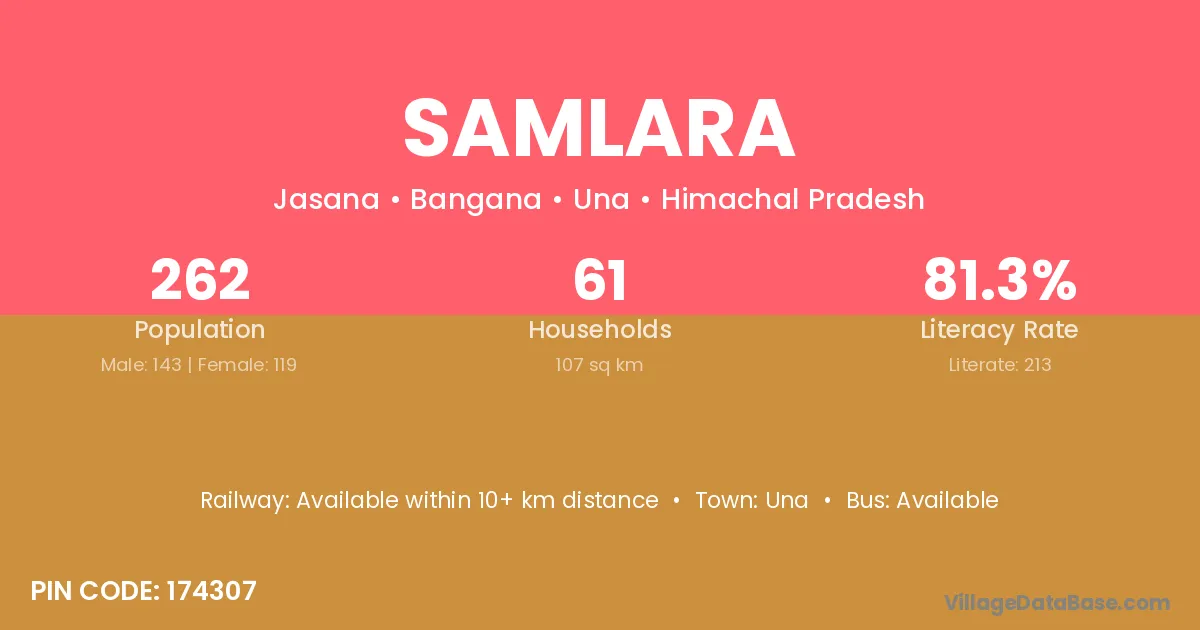 Samlara village has a total population of 262 people, of which 143 are males and 119 are females.