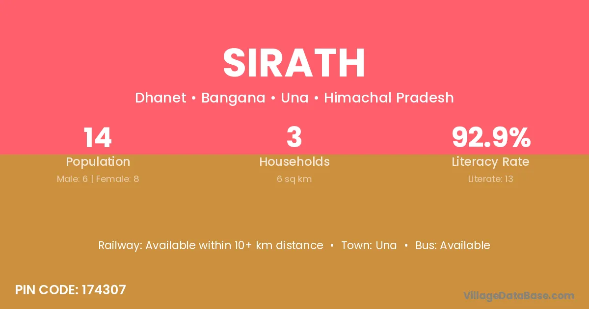 Sirath village has a total population of 14 people, of which 6 are males and 8 are females.