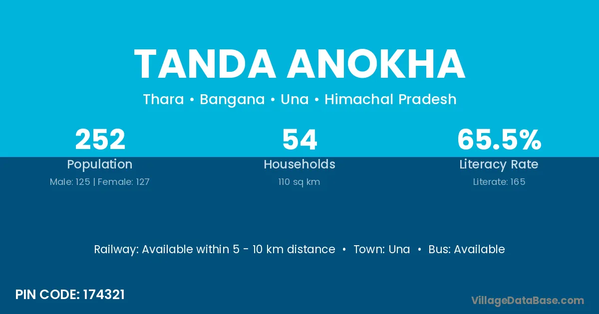 Tanda Anokha village has a total population of 252 people, of which 125 are males and 127 are females.