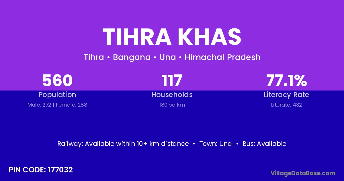 Una is the nearest town to Tihra Khas village for major economic activities
