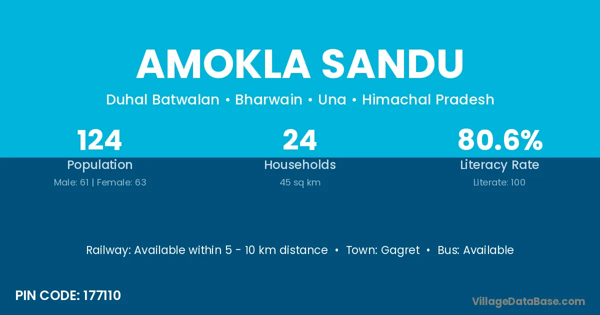 Amokla Sandu village has a total population of 124 people, of which 61 are males and 63 are females.