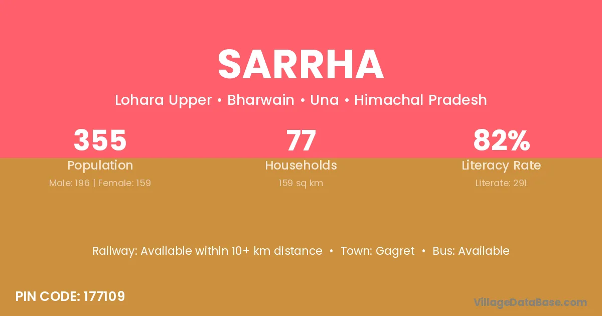 According to Census 2011 information, the village code of Sarrha village is 177109.