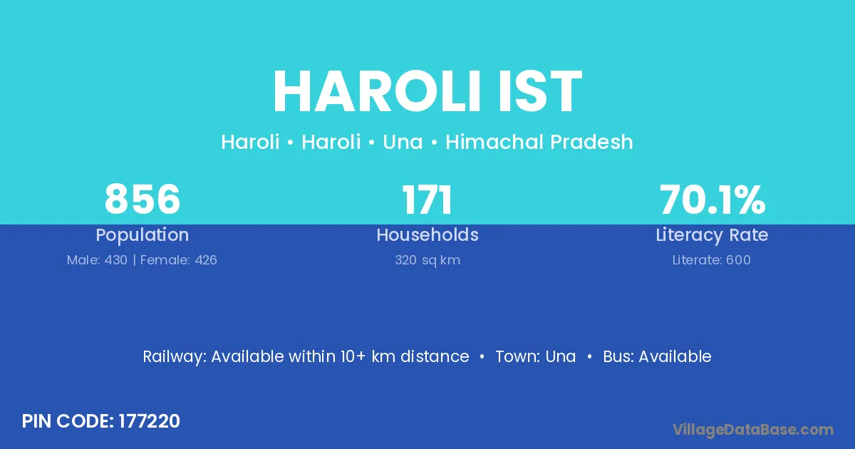 Haroli Ist village has a total population of 856 people, of which 430 are males and 426 are females.