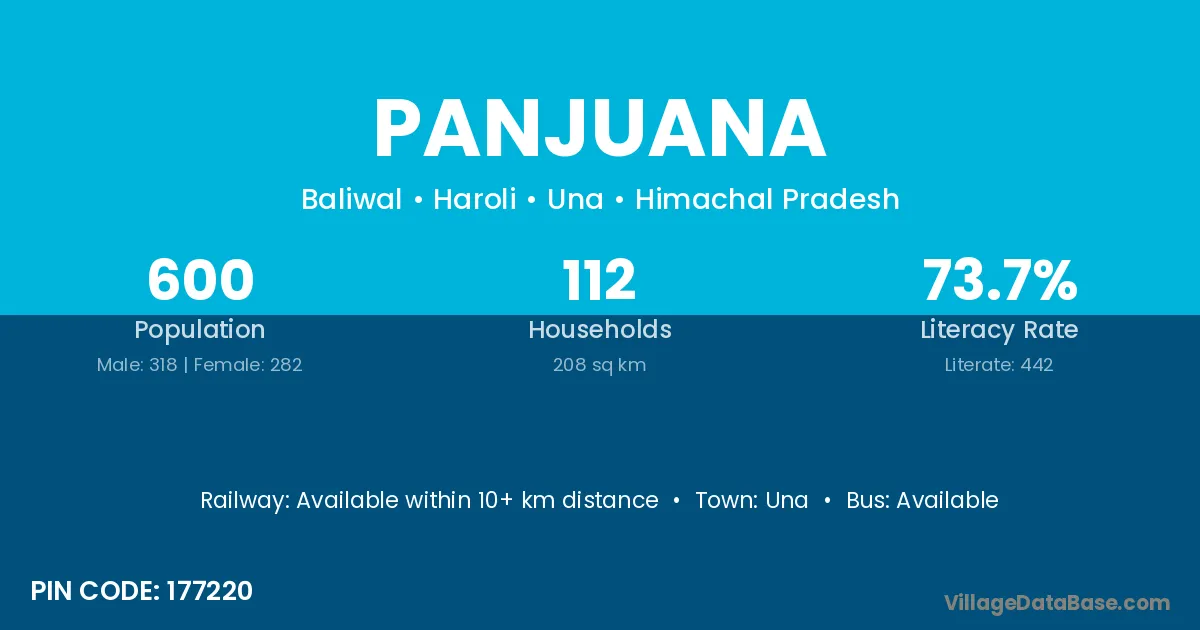 Panjuana village has a total population of 600 people, of which 318 are males and 282 are females.