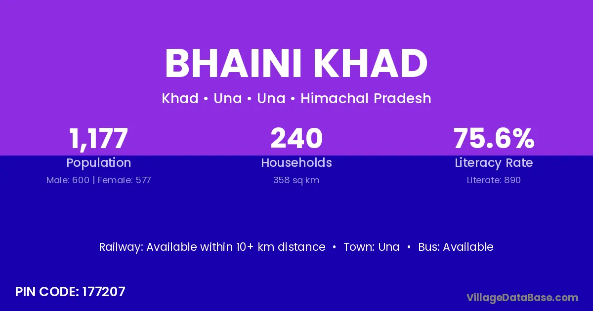 Bhaini Khad village has a total population of 1,177 people, of which 600 are males and 577 are females.