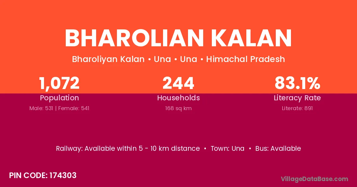 Una is the nearest town to Bharolian Kalan village for major economic activities