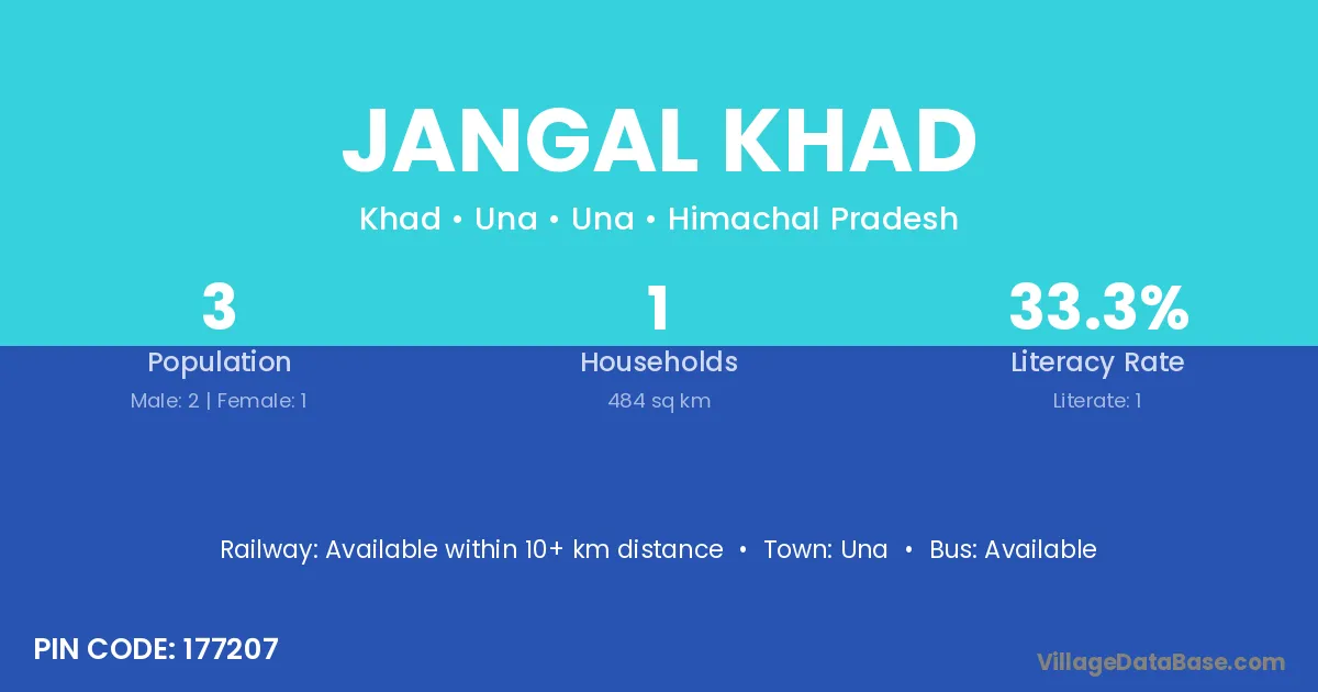 Jangal Khad village has a total population of 3 people, of which 2 are males and 1 are females.