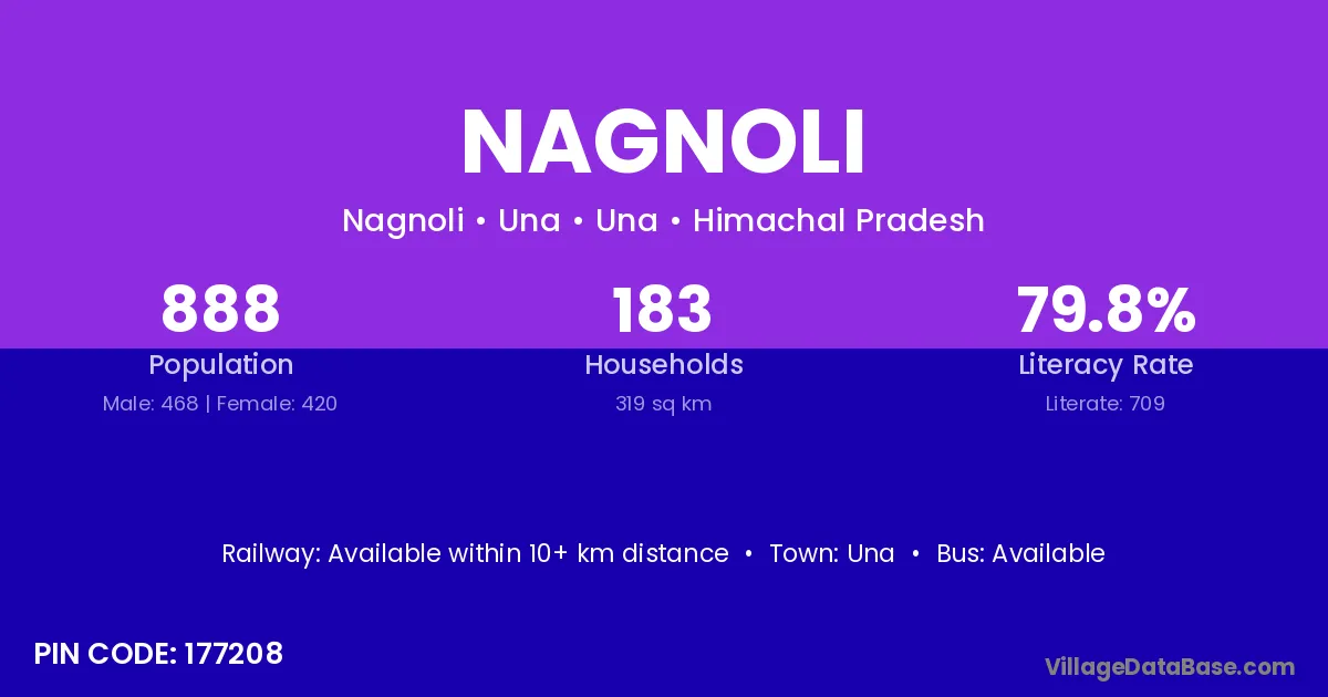 Nagnoli village has a total population of 888 people, of which 468 are males and 420 are females.