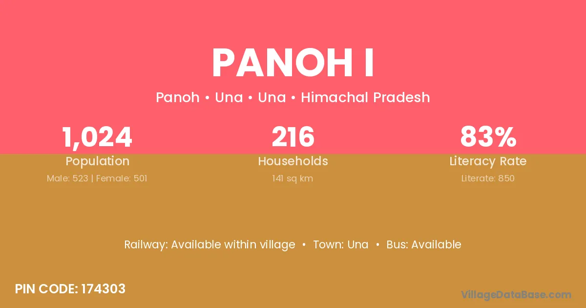 Panoh I village has a total population of 1,024 people, of which 523 are males and 501 are females.