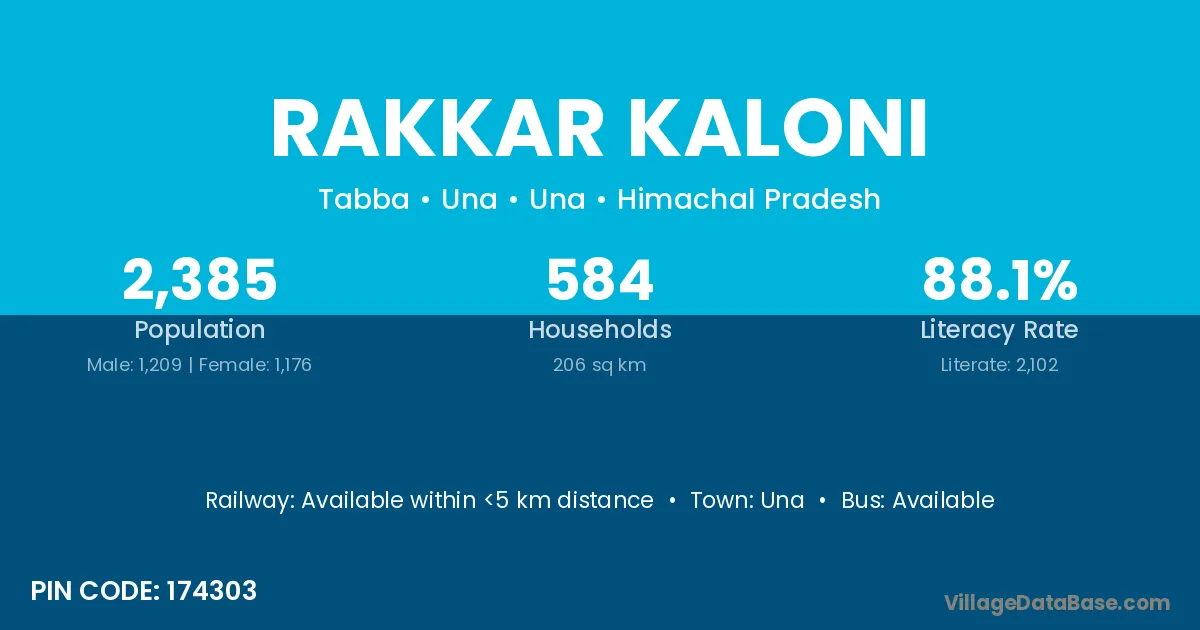 Rakkar Kaloni village has a total population of 2,385 people, of which 1,209 are males and 1,176 are females.