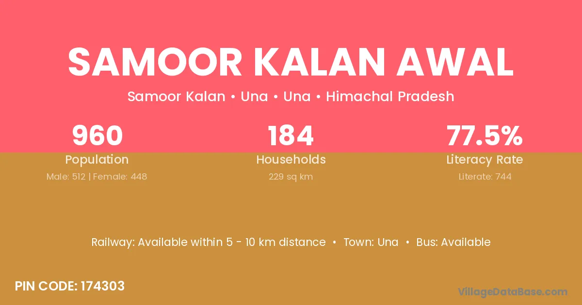 According to Census 2011 information, the village code of Samoor Kalan Awal village is 174303.