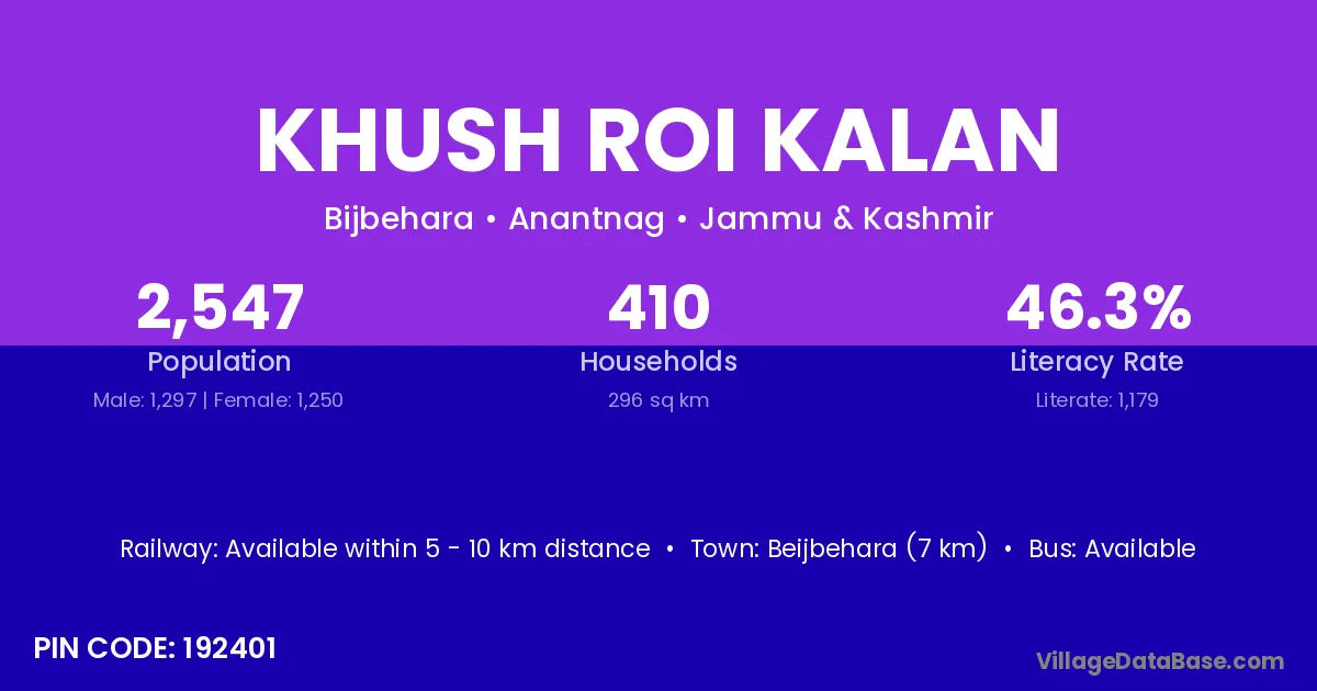 There are approximately 410 households in Khush Roi Kalan village.