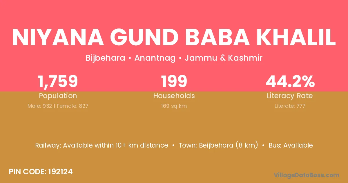 According to Census 2011 information, the village code of Niyana Gund Baba Khalil village is 192124.