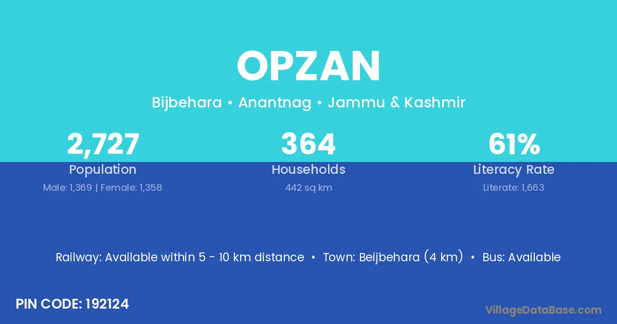 Beijbehara (4 km) is the nearest town to Opzan village for major economic activities and is located approximately 4 km away.