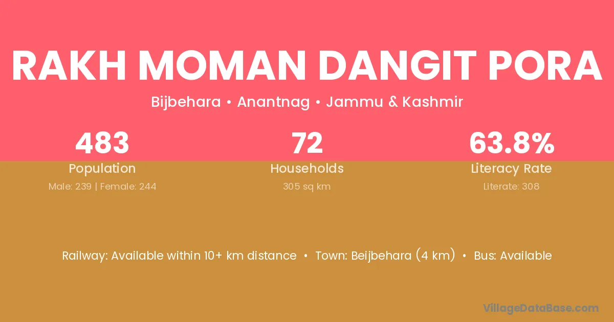 Rakh Moman Dangit Pora village has a total population of 483 people, of which 239 are males and 244 are females.
