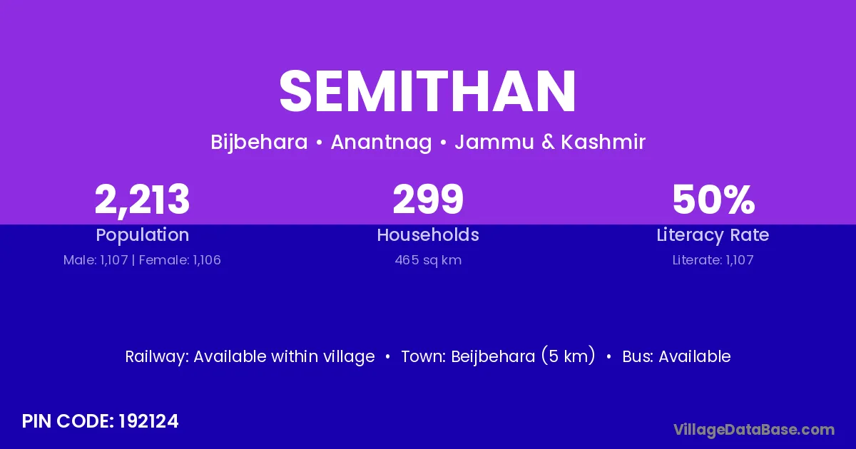 According to Census 2011 information, the village code of Semithan village is 192124.