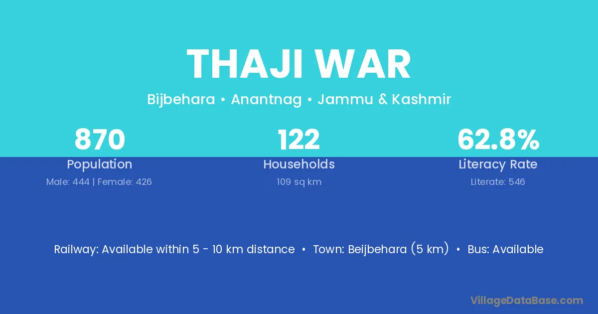 Thaji War village has a total population of 870 people, of which 444 are males and 426 are females.