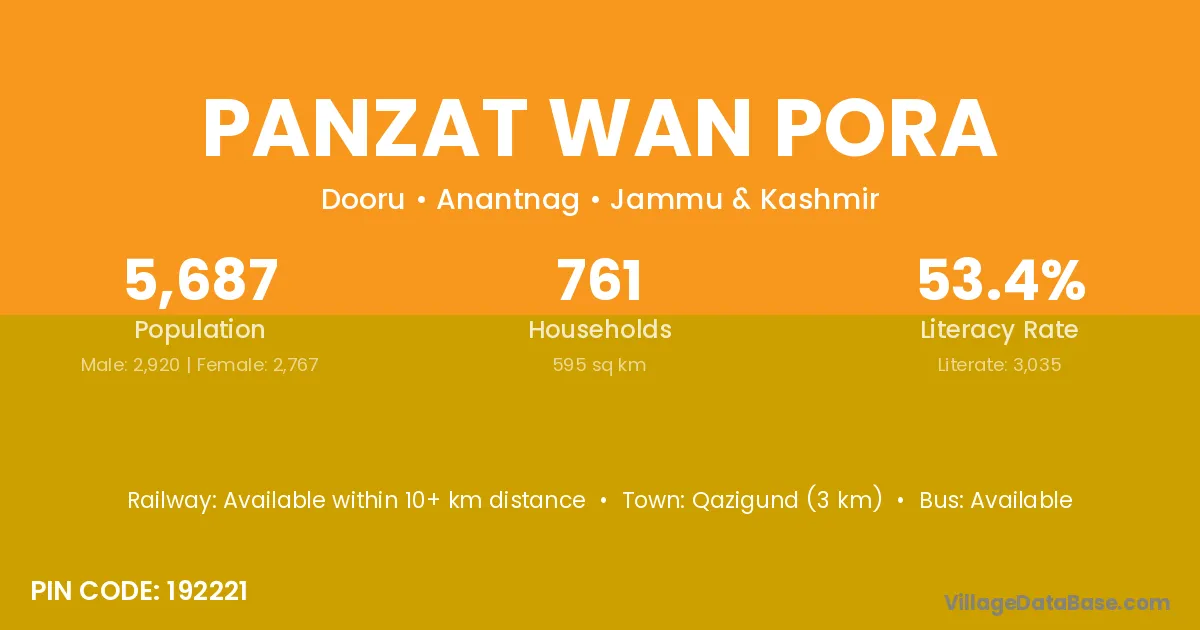 Qazigund (3 km) is the nearest town to Panzat Wan Pora village for major economic activities and is located approximately 3 km away.