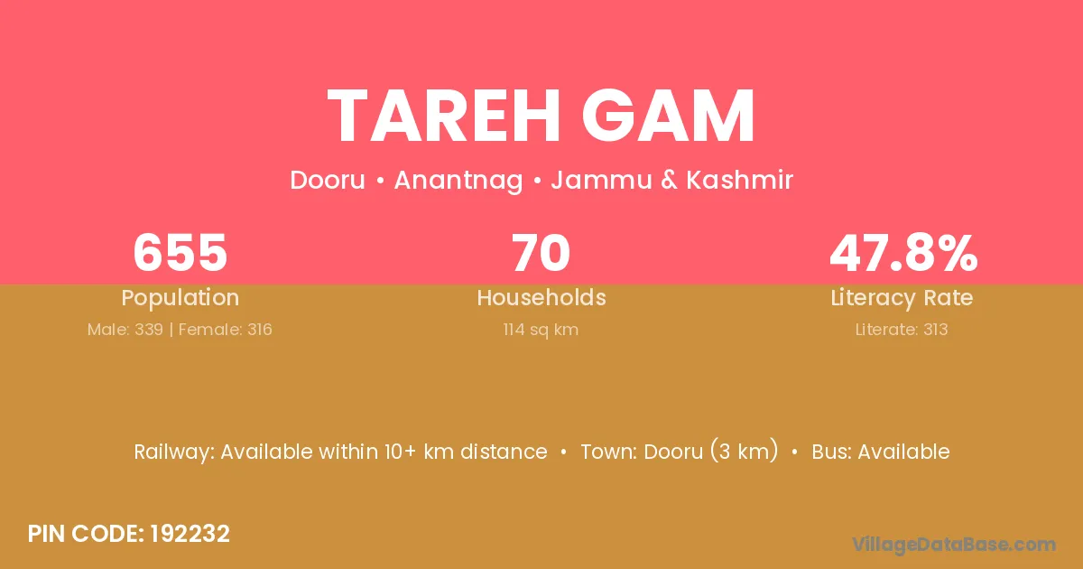 Tareh Gam village is located in the Dooru Tehsil of the Anantnag district in Jammu & Kashmir .