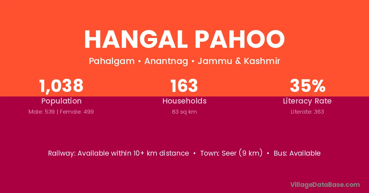 Hangal Pahoo village has a total population of 1,038 people, of which 539 are males and 499 are females.