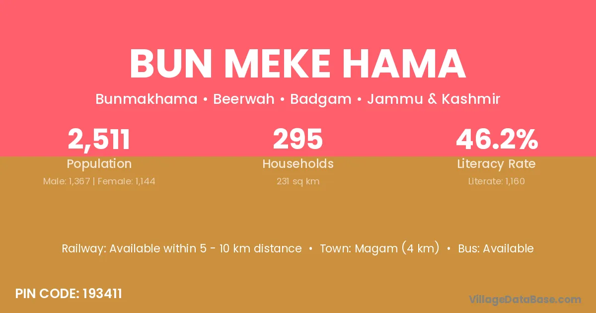 Bun Meke Hama village is located in the Beerwah Tehsil of the Badgam district in Jammu & Kashmir .