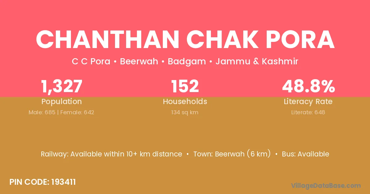 Beerwah (6 km) is the nearest town to Chanthan Chak Pora village for major economic activities and is located approximately 6 km away.