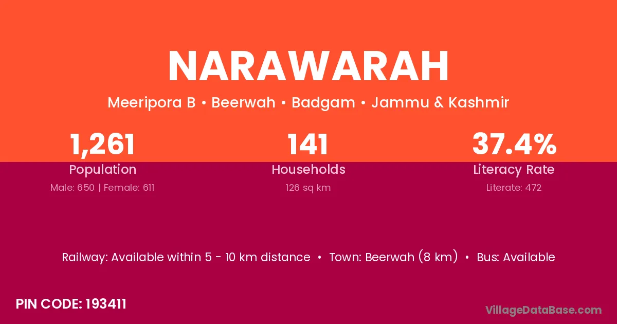 Narawarah village has a total population of 1,261 people, of which 650 are males and 611 are females.