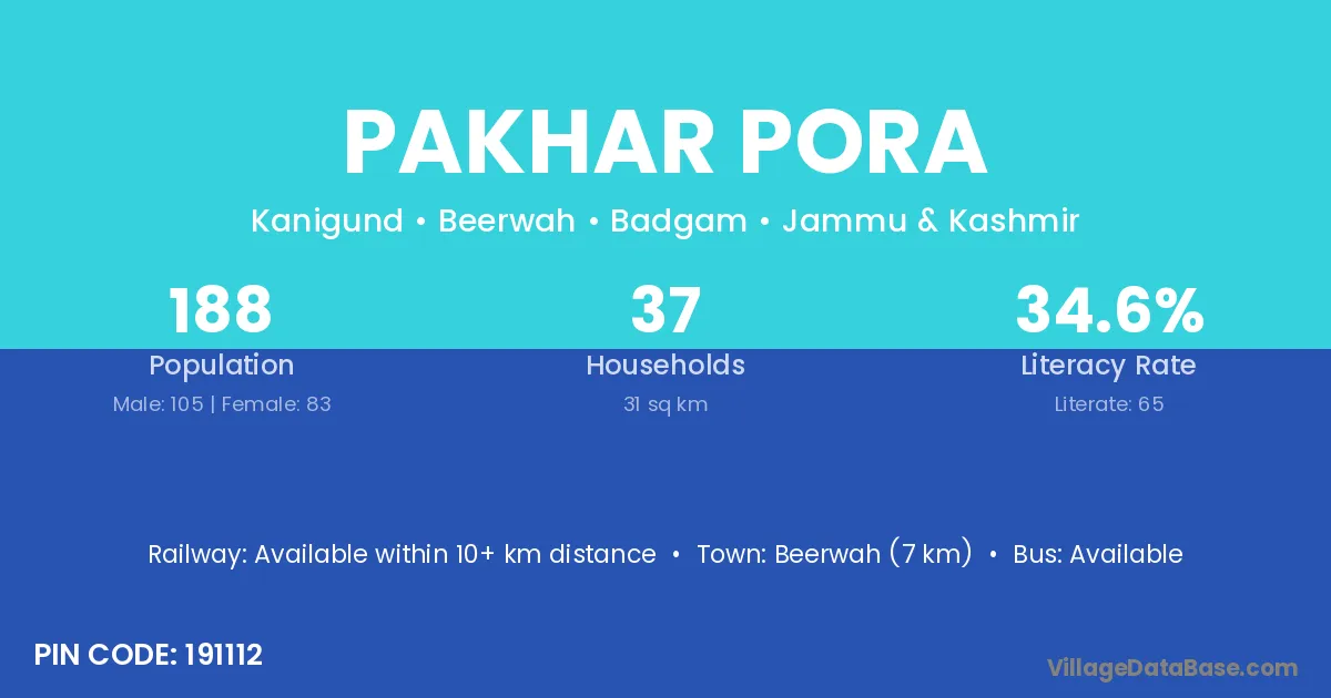 Beerwah (7 km) is the nearest town to Pakhar Pora village for major economic activities and is located approximately 7 km away.