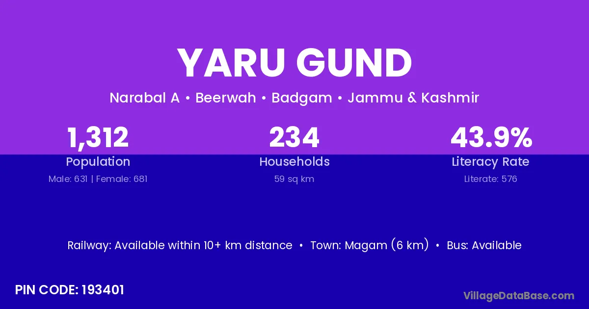 According to Census 2011 information, the village code of Yaru Gund village is 193401.