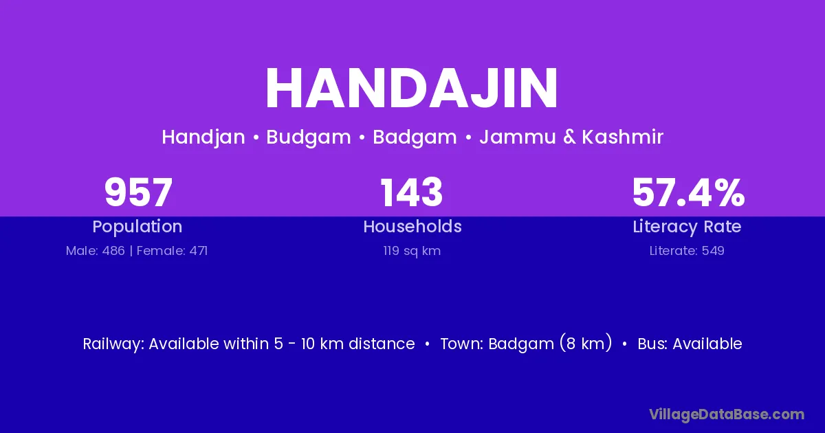 Badgam (8 km) is the nearest town to Handajin village for major economic activities and is located approximately 8 km away.