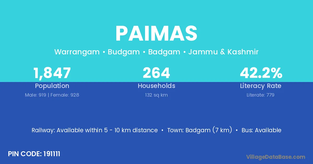 Badgam (7 km) is the nearest town to Paimas village for major economic activities and is located approximately 7 km away.