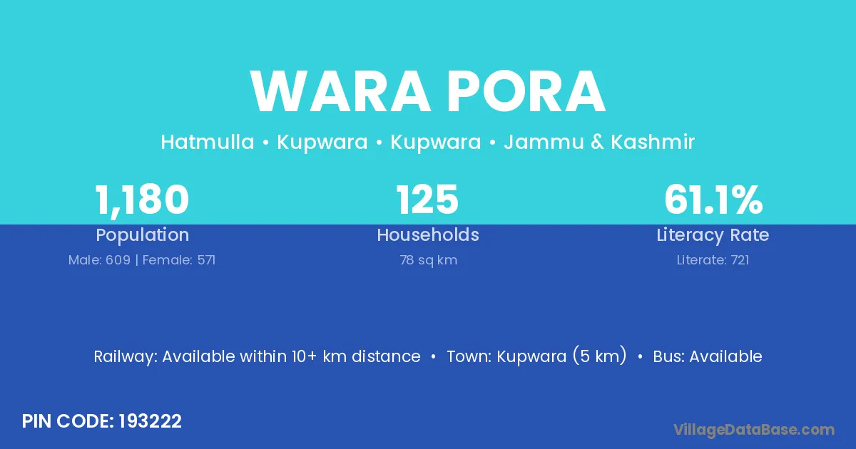 Badgam (4 km) is the nearest town to Wara Pora village for major economic activities and is located approximately 4 km away.