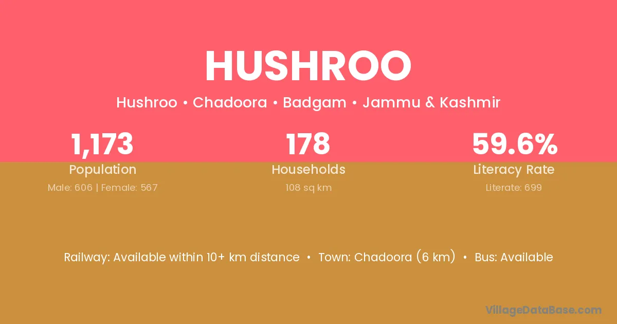 Hushroo village has a total population of 1,173 people, of which 606 are males and 567 are females.