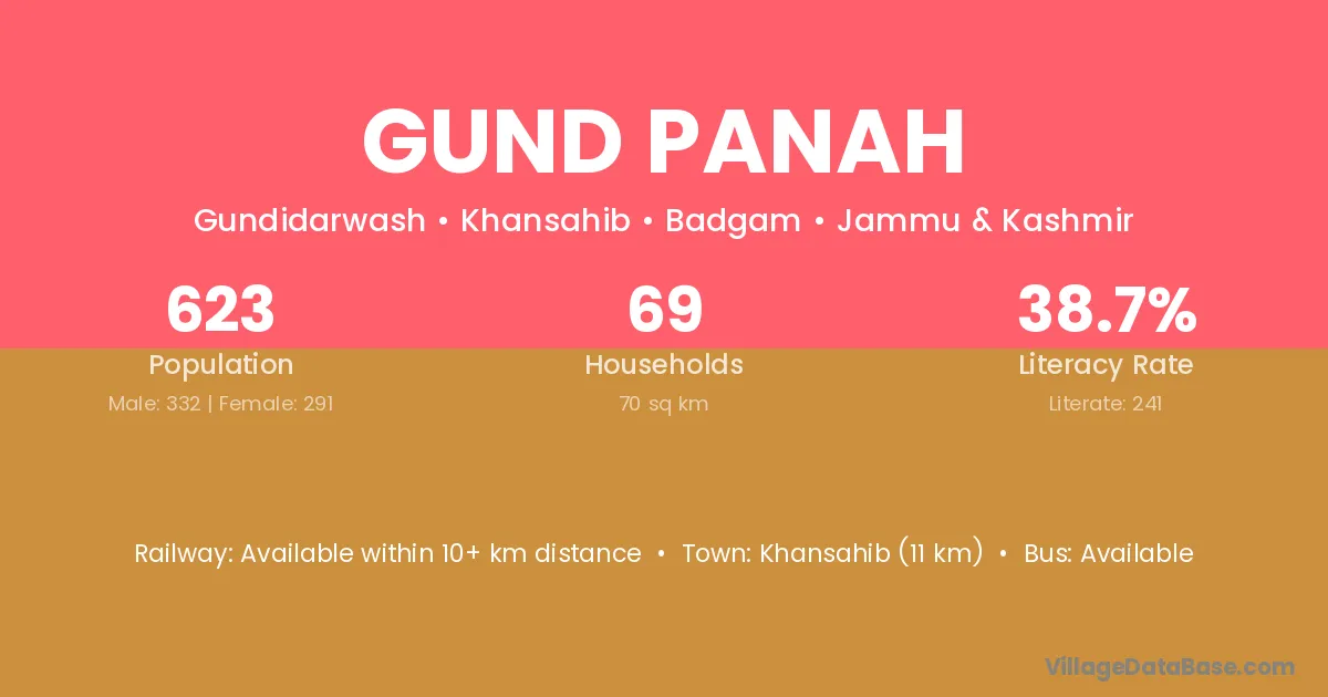 The literacy rate of Gund Panah village is 38.68%. Male literacy stands at 42.17% and female literacy at 34.71%.