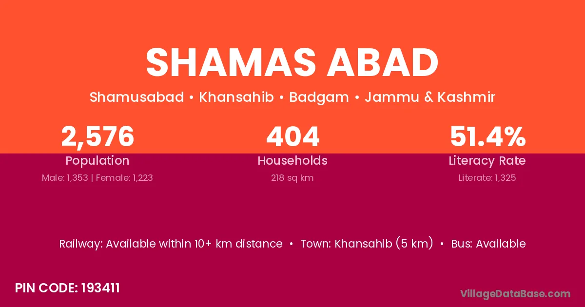 According to Census 2011 information, the village code of Shamas Abad village is 193411.