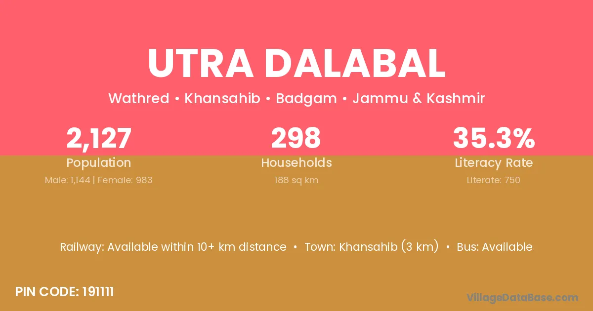Khansahib (3 km) is the nearest town to Utra Dalabal village for major economic activities and is located approximately 3 km away.