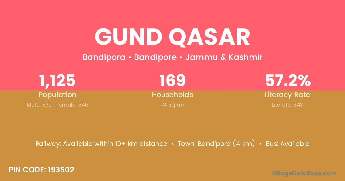 Bandipora (4 km) is the nearest town to Gund Qasar village for major economic activities and is located approximately 4 km away.