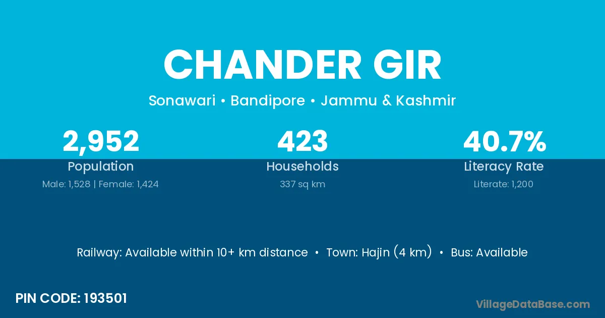 Hajin (4 km) is the nearest town to Chander Gir village for major economic activities and is located approximately 4 km away.